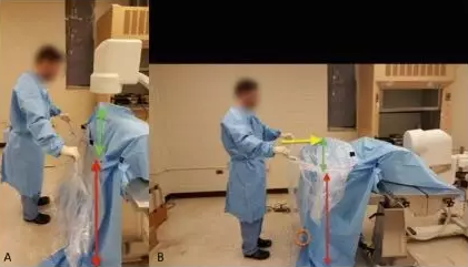 1、為了減少醫(yī)生和手術(shù)區(qū)污染的風(fēng)險,手術(shù)醫(yī)生開發(fā)了無菌保護(hù)膜來防護(hù)手術(shù)區(qū)污染方法。具體方法是通過在C形臂可能暴露于手術(shù)區(qū)上方的部分套上無菌保護(hù)膜,來將其與污染源隔離,從而降低C形臂對手術(shù)區(qū)造成污染的可能。