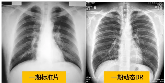 動態(tài)DR技術與普通DR單截面診斷的不同就是在操作過程中,可以隨時切換成透視模式,透視/攝片模式實時切換,對陰影進行多角度動態(tài)的鑒別。實時點片、實時回放、連續(xù)點片等多功能大大的增加了初診的準確率。在小陰影的形態(tài)和性質,特別是不規(guī)則小陰影的判斷方面提升,從而達到提高胸片整體判斷準確性。