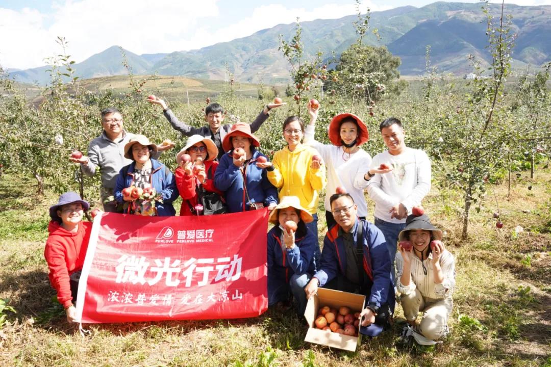 十月,正值鹽源蘋果收獲的季節(jié),為了幫果農(nóng)打開銷路,安心過冬,同時把新鮮采摘的鹽源蘋果回饋給普愛醫(yī)療的員工和會員俱樂部的會員們,公益團(tuán)隊親自來到果園,幫助果農(nóng)采摘蘋果。